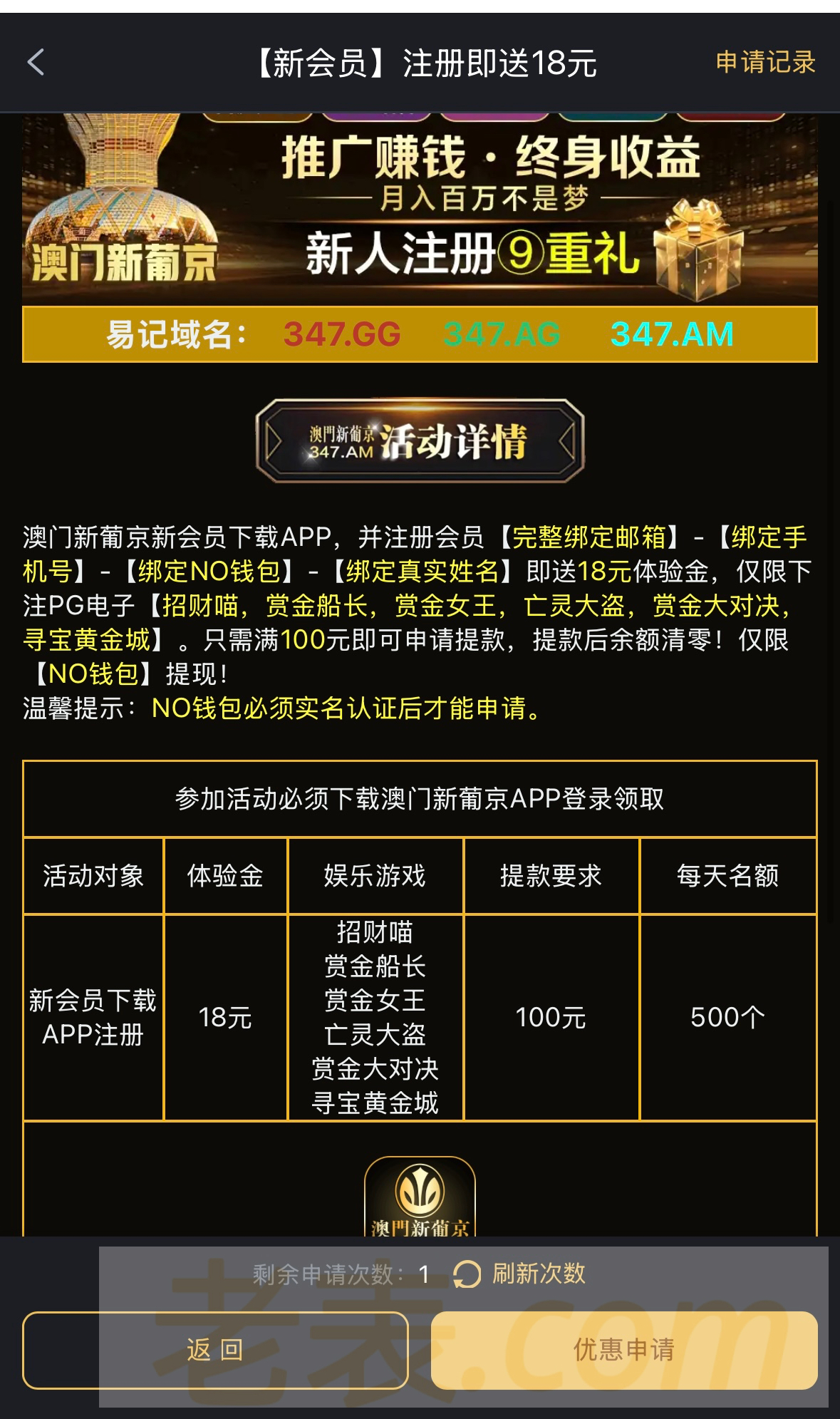 新用户注册完善信息,优惠大厅自助领取!具体自测!